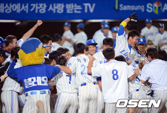 연장 10회말 삼성 선수들이 끝내기 홈런을 날린 박한이를 환호해주고 있다 ./ ajyoung@osen.co.kr