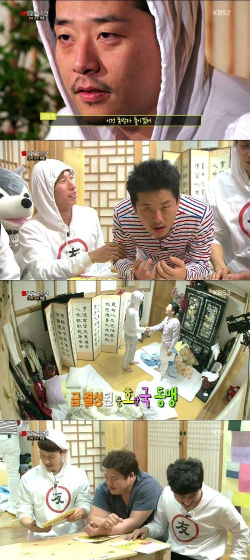 양상국과 김준호는 8일 오후 방송된 KBS 2TV 예능프로그램 '인간의 조건'에서 멤버들 사이 일종의 인기투표인 진짜 친구 투표에서 단 한 명의 선택도 받지 못해 아쉬워햇다.