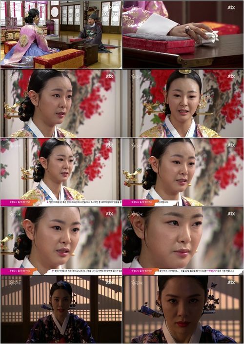 한원부원군이 급히 중전을 찾아가 “전하의 체면을 생각해야 한다”며 설득에 나섰지만, 중전은 도리어 버럭 소리를 지르며 한원부원군의 말문을 막고는, 갑자기 서랍에서 한약재를 꺼내 보였다. 그리고 약재를 가리켜 “먹으면 회임을 피할 수 있는 약”이라 설명하며 자신이 그간 아이를 갖지 못한 이유를 담담한 어조로 털어놔 한원부원군을 깜짝 놀라게 만들었다. 또한 “전하께선 제 몸에 손 끝 하나 대지 않으셨습니다. 저를 품고는 주무셨어도 저를 여인으로 만들어주지는 않으셨습니다”라는 상상초월의 충격적인 고백도 했던 것.