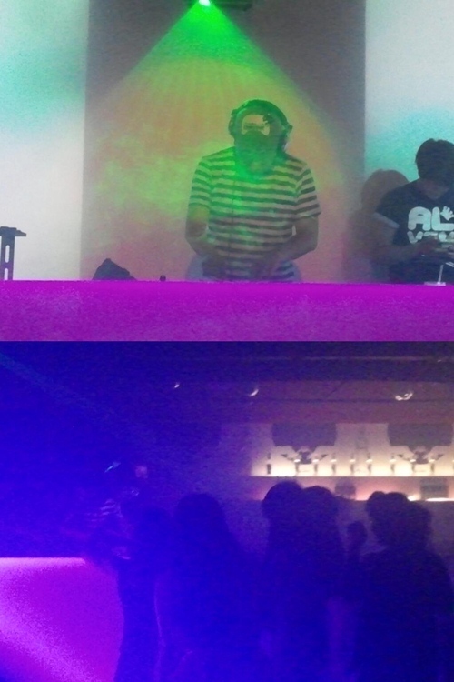 사진작가 오중석은 9일 새벽 자신의 트위터에 "이태원클럽에서 디제잉 중이신 명수형. 명수형에 열광하는 소녀떼"라는 글과 함께 사진 두 장을 게재했다.