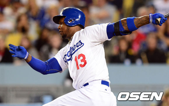9일 오전(이하 한국시간) 미국 캘리포니아주 로스앤젤레스 다저스타디움에서 열린 LA 다저스와 애틀랜타 브레이브스의 경기 8회말 2사 3루 라미레스가 1타점 적시타를 치고 있다.