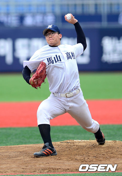 9일 오후 창원 마산구장에서 열린 '제67회 황금사자기 전국고교야구대회 겸 주말리그 왕중왕전' 덕수고와 마산고의 결승전 경기, 1회초 마산고 궁정홍이 역투하고 있다.