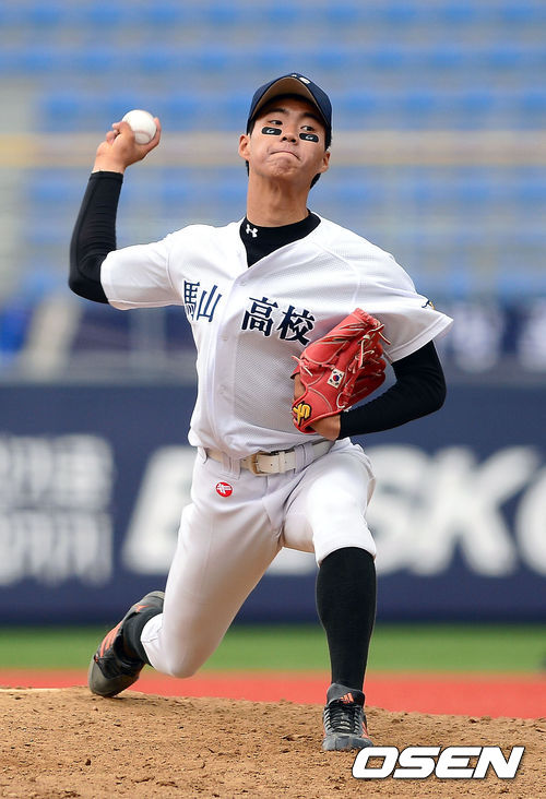 9일 오후 창원 마산구장에서 열린 '제67회 황금사자기 전국고교야구대회 겸 주말리그 왕중왕전' 덕수고와 마산고의 결승전 경기, 6회초 마산고 류재인이 마운드에 올라 역투하고 있다.
