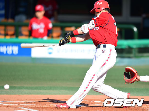 9일 오후 목동구장에서 열리는 '2013 한국야쿠르트 세븐 프로야구' 넥센 히어로즈 대 KIA 타이거즈의 경기가 열렸다. 1회초 KIA공격 1사 2루 상황 3번 김주찬의 내야 땅볼 때 배트가 부러지고 있다. 김주찬은 넥센 유격수 신현철의 실책으로 인해 1루까지 출루.