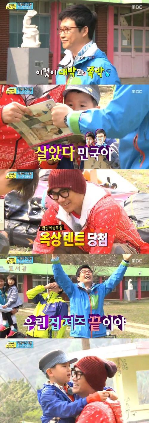 한편 스타와 스타자녀들의 오지여행기를 다룬 ‘아빠 어디가’는 성동일·성준, 김성주·김민국, 송종국·송지아, 이종혁·이준수, 윤민수·윤후가 출연한다. 이날 방송은 다섯 아빠와 아이들이 한적한 시골마을의 작은 분교로 캠핑을 떠난 이야기로 꾸며졌다.