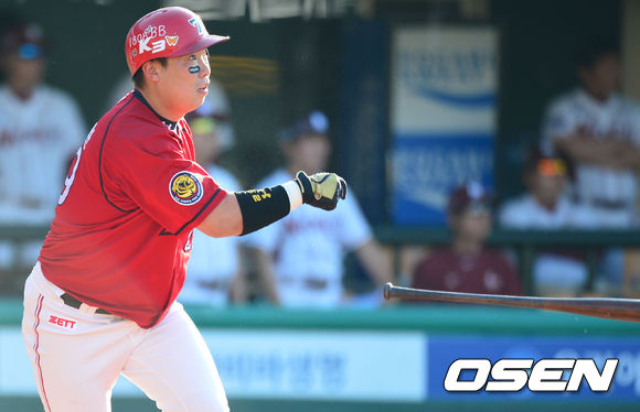 9일 오후 목동구장에서 열리는 '2013 한국야쿠르트 세븐 프로야구' 넥센 히어로즈 대 KIA 타이거즈의 경기가 열렸다. 3회초 KIA 공격 2사 2루 상황 4번 나지완이 중월 투런포를 날리고 타구를 바라보고 있다.