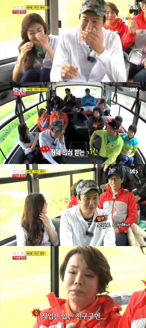 버스에 올라 대화를 나누던 중 멤버들은 이광수와 권리세 커플을 '스토커 커플'이라고 놀려댔다. 그러던 중 유재석은 김수미가 이광수에 대해 "성실해 보이고 참 좋은데 이 친구 직업이 뭐야?"라고 물어봤다고 폭로해 이광수를 당황하게 만들었다.