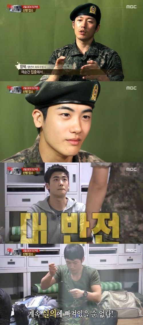 장혁은 9일 오후 방송된 MBC 예능프로그램 ‘일밤-진짜 사나이’에서 제국의 아이들 박형식과 함께 신병으로 훈련소에 입소했다. 예비역인 장혁은 군 복무 당시 표창을 받았던 경험이 있어 자신감 넘치게 군 생활을 시작했지만 돌아오는 것은 조교의 지적이었다.