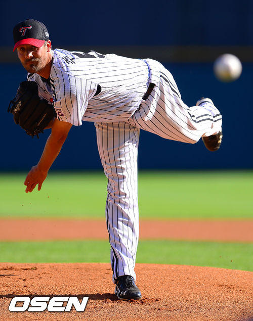 9일 오후 서울 잠실구장에서 열린 2013 한국야쿠르트 세븐 프로야구 LG 트윈스와 롯데 자이언츠의 경기,1회초 LG 선발투수 주키치가 역투하고 있다