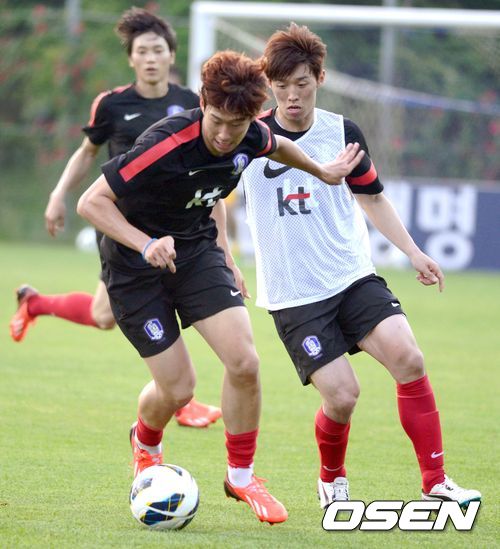 미니게임에서 손흥민이 김보경과 볼을 다투고 있다. /spjj@osen.co.kr