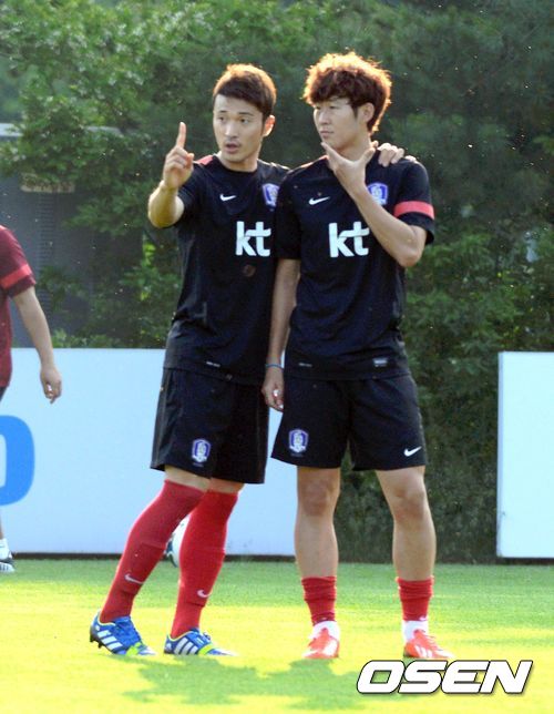 박종우가 손흥민과 포지션에 대해 이야기를 나누고 있다. /spjj@osen.co.kr