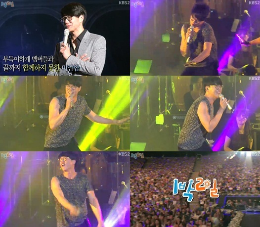 이에 방송 말미에는 녹화날 콘서트 무대에 선 성시경의 모습이 공개됐다. 영상 속에서 성시경은 멤버들과 끝까지 녹화를 함께 하지 못한 미안한 마음을 전달했다.