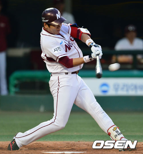 9일 오후 목동구장에서 열리는 '2013 한국야쿠르트 세븐 프로야구' 넥센 히어로즈 대 KIA 타이거즈의 경기가 열렸다. 8회말 넥센 공격 1사 1, 2루 상황 5번 강정호가 좌전안타를 날리고 있다.