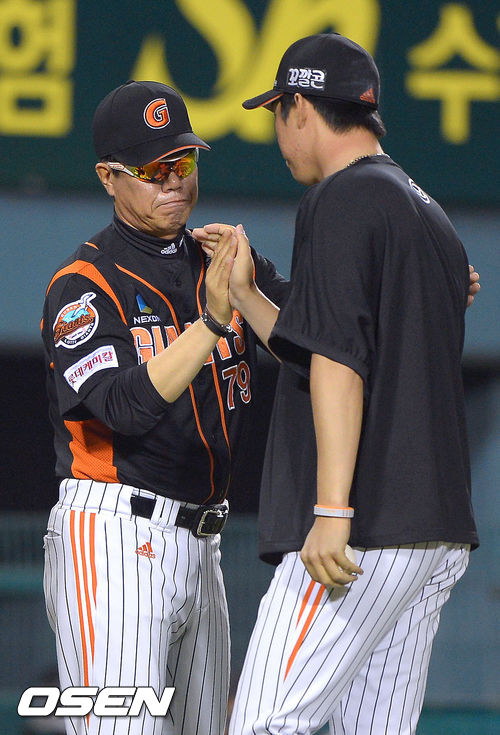 경기종료 후 롯데 김시진 감독이 승리투수가 된 이재곤과 하이파이브를 하고 있다/ soul1014@osen.co.kr