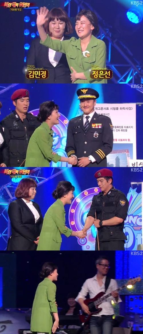 정은선은 지난 9일 방송된 KBS 2TV ‘개그콘서트’(‘개콘’)의 700회 특집 코너 ‘비상대책위원회’에서 박근혜 대통령 캐릭터로 깜짝 등장해 폭소를 자아냈다.