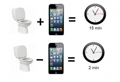 양변기 더하기 스마트폰은 15분이나 걸리는 반면 양변기 빼기 스마트폰은 2분에 불과하다.