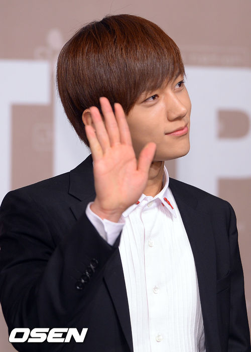 10일 오후 서울 청담동 청담 CGV에서 진행된 그룹 인피니트 첫번째 월드투어 'ONE GREAT STEP' 기자회견에서 인피니트 엘이 팬들 향해 인사를 하고 있다