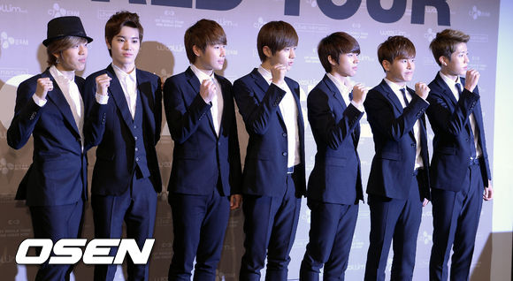 10일 오후 서울 청담동 청담 CGV에서 진행된 그룹 인피니트 첫번째 월드투어 'ONE GREAT STEP' 기자회견에서 인피니트가 포즈를 취하고 있다.