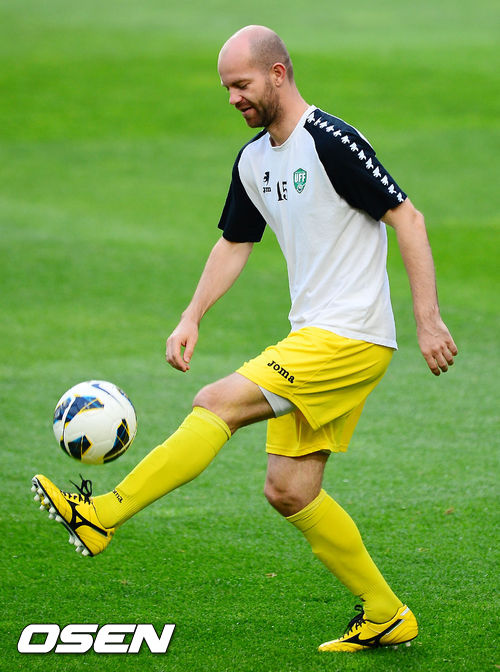 수원 삼성에서 뛰었던 우즈벡 게인리히가 그라운드 위에서 몸을 풀고 있다. / rumi@osen.co.kr