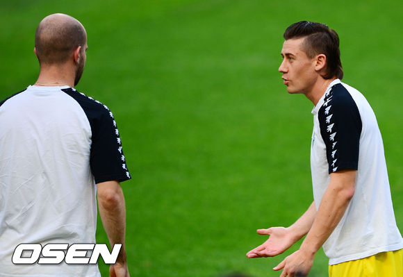 수원에서 뛰었던 우즈벡의 게인리히와 성남 일화에서 뛰고 있는 우즈벡의 제파로프가 서로 얘기를 나누고 있다. / rumi@osen.co.kr