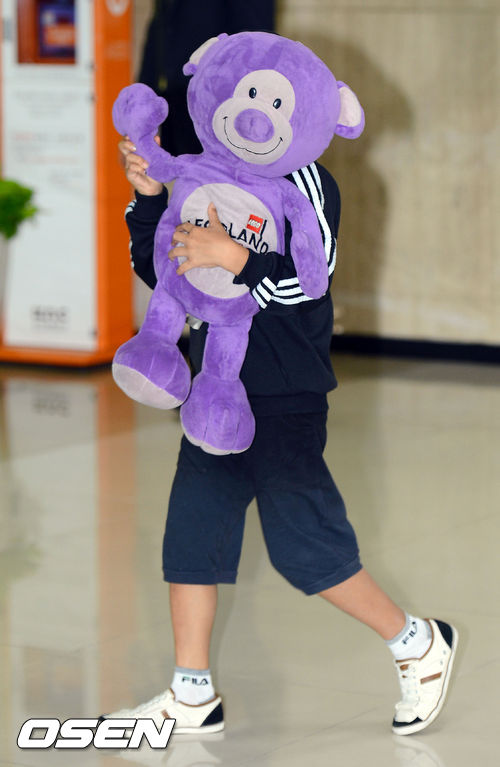 할리우드 배우 브래드 피트 자녀가 입국장을 빠져나가고 있다.