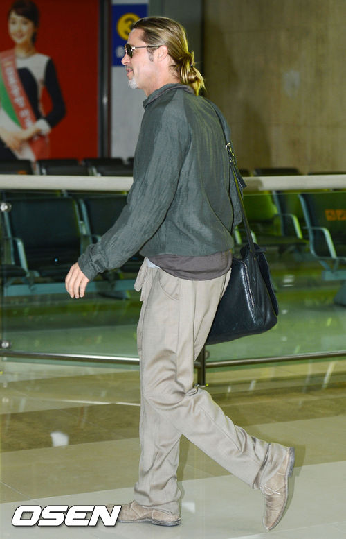 할리우드 배우 브래드 피트가 입국장을 빠져나가고 있다.