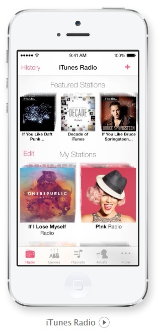 ‘아이튠즈 라디오’는 사용자가 재생하고 다운로드한 음악을 기반으로 진화한다. 과거 음악 재생 이력을 통해 사용자가 선호할 만한 방송국으로 연결된다. 주요 방송국은 애플이 관장하며 장르에 초점을 맞춘 방송국은 오직 사용자만을 위해 맞춤형으로 구성된다.