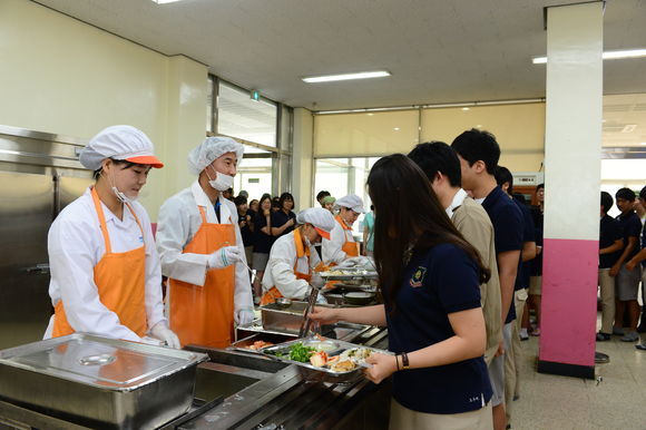 인천 유나이티드의 이천수가 11일 인천외국어고등학교에서 배식봉사 활동을 펼치며 학업에 지친 학생들을 격려했다.