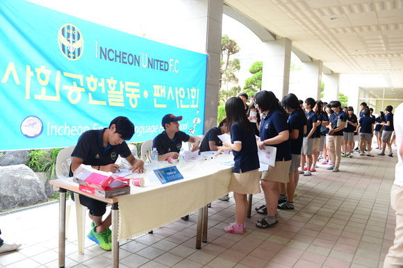 인천은 올 시즌 초부터 인천지역 많은 학교를 방문하며 학생들을 대상으로 배식봉사 및 축구특강, 싸인회 등 다양한 이벤트를 통해 학생들과 교감을 나누고 있다.