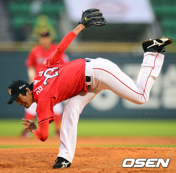 SK 선발 김광현,'온 힘을 다해 공을 뿌리며!'