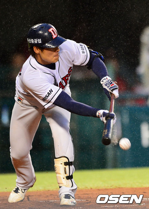 11일 오후 서울 잠실구장에서 열린 2013 한국야쿠르트 세븐프로야구 두산 베어스와 SK 와이번스의 경기, 3회말 무사 주자 2루 민병헌이 희생번트에 성공하고 있다.
