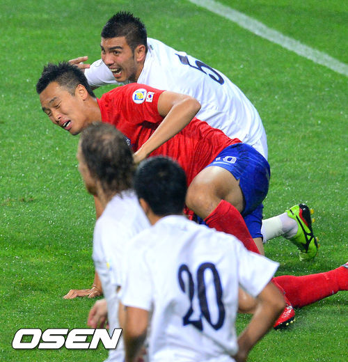 11일 오후 서울월드컵경기장에서 열린 '2014 브라질월드컵 아시아 최종예선 A조 7차전' 한국과 우즈베키스탄의 경기, 전반 슛 찬스를 놓친 김신욱이 아쉬워하고 있다