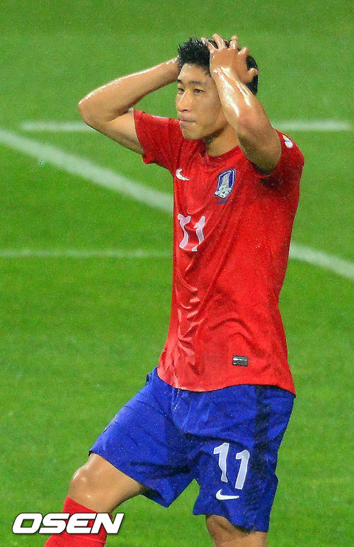 11일 오후 서울월드컵경기장에서 열린 '2014 브라질월드컵 아시아 최종예선 A조 7차전' 한국과 우즈베키스탄의 경기, 전반 이근호가 슛찬스를 놓친후 아쉬워하고 있다.