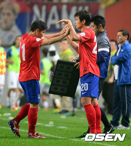 11일 오후 서울월드컵경기장에서 열린 '2014 브라질월드컵 아시아 최종예선 A조 7차전' 한국과 우즈베키스탄의 경기, 후반 한국 이동국이 이근호와 교체되고 있다.
