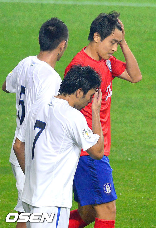 11일 오후 서울월드컵경기장에서 열린 '2014 브라질월드컵 아시아 최종예선 A조 7차전' 한국과 우즈베키스탄의 경기, 후반 이동국이 오프사이드를 범한 후 아쉬워하고 있다