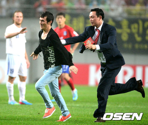 그라운드 난입 우즈벡 관중, '나 잡아봐라'
