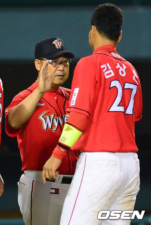 경기를 마치고 SK 이만수 감독과 김상현이 하이파이브를 하고 있다. / rumi@osen.co.kr