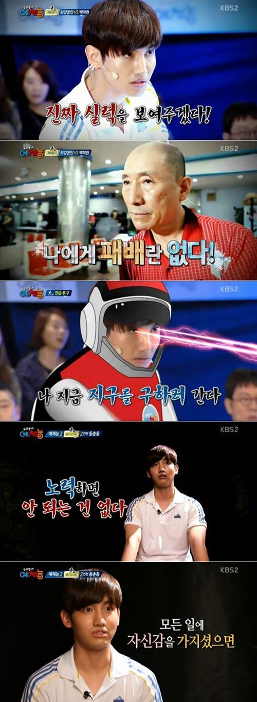 한편 이날 '예체능' 팀은 강호동 승리에 이어, 이수근이 패, 그리고 또 다시 알렉스가 승, 최강창민이 패하는 등 엎치락뒤치락 하는 모습으로 긴장감을 한껏 자아냈다.