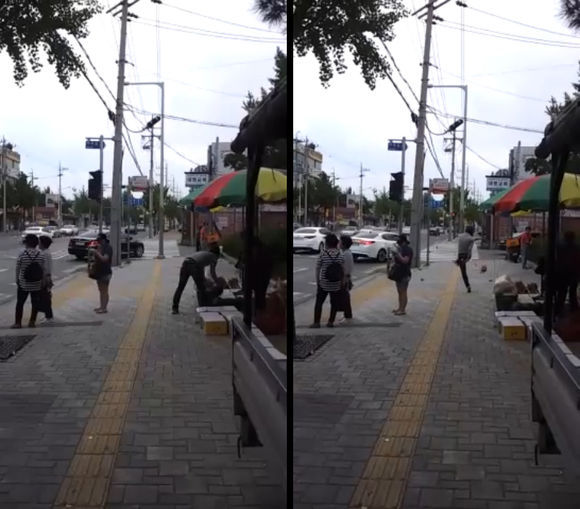 30초 미안의 이 동영상에는 후드티를 입은 한 남자가 등자하더니 카메라를 향해 "찍고 있냐"고 확인한다. 그리고는 곧장 수박 노점상으로 가더니 수박 한 덩이를 집어들었다. 주인에게는 아무런 말도 없다. 그러더니 이내 그 앞에서 이를 걷어차 산산조각을 내버린다.