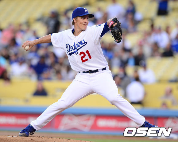 12일 오전(이하 한국시간) 미국 캘리포니아주 로스앤젤레스 다저스타디움에서 열린 LA 다저스와 애리조나 다이아몬드백스의 경기 다저스 선발 그레인키가 역투하고 있다.