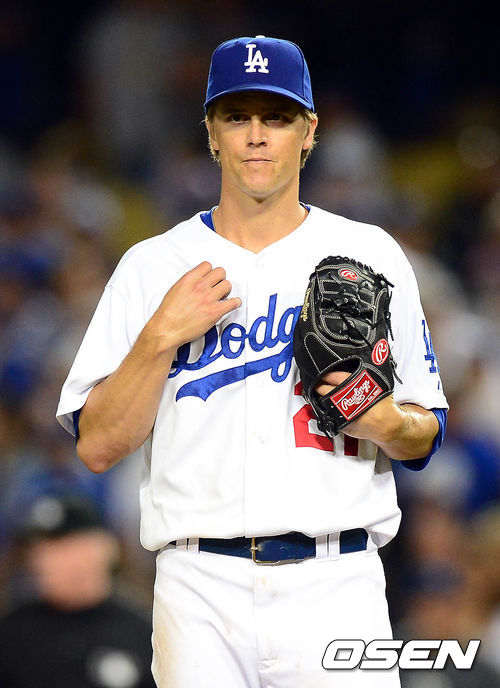 12일 오전(이하 한국시간) 미국 캘리포니아주 로스앤젤레스 다저스타디움에서 열린 LA 다저스와 애리조나 다이아몬드백스의 경기 7회초 선두타자 몬테로가 그레인키의 투구에 몸을 맞자 벤치 클리어링이 일어난 후 그레인키가 마운드에 서 있다.