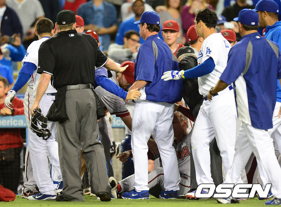 다저스-애리조나 벤치클리어링,'투수에 대한 보복사구에 집단 난투극!'