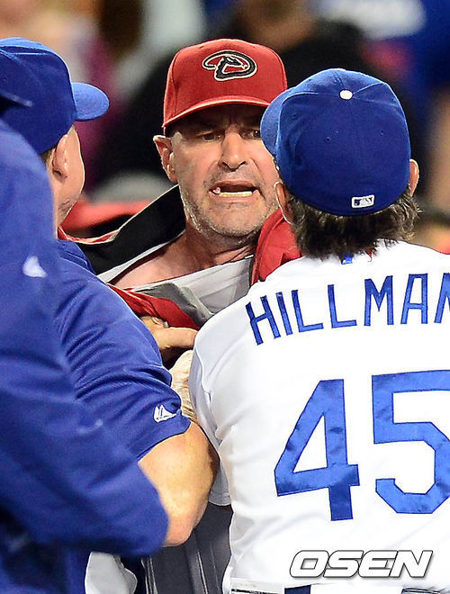 애리조나는 12일(이하 한국시간) 미국 캘리포니아주 로스앤젤레스 다저스타디움에서 열린 '2013 메이저리그' 다저스와 원정경기에서 3-5로 패했다. 하지만 경기 자체보다 더욱 화제를 모은 게 빈볼 시비에 따른 난투극이었다. 양 팀은 3개의 사구를 주고받았고, 두 차례 벤치 클리어링에 화끈한 몸싸움까지 벌였다.