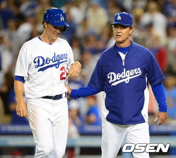 7회말 벤치클리어링때 매팅리 감독이 사구에 맞은 그레인키를 위로하고 있다. /baik@osen.co.kr
