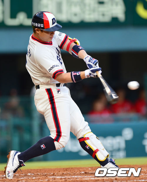 12일 오후 서울 잠실야구장에서 '2013 한국야쿠르트 세븐 프로야구' 두산 베어스와 SK 와이번스의 경기가 열렸다. 2회말 두산 공격 1사 주자없는 상황 5번 윤석민이 좌익수 옆으로 흐르는 2루타를 날리고 있다.