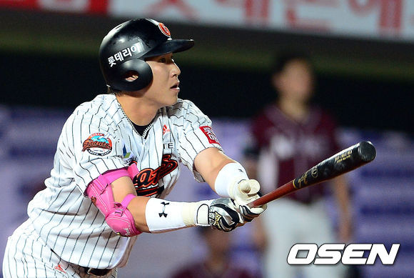 12일 오후 부산 사직구장에서 열린 '2013 한국야쿠르트 세븐 프로야구' 롯데 자이언츠와 넥센 히어로즈의 경기, 8회말 2사 만루 롯데 박준서가 싹슬이 3타점 2루타를 때리고 있다.