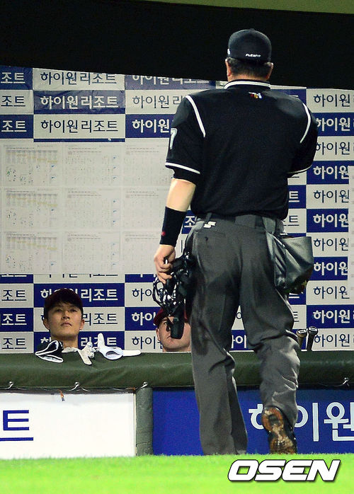 김병현은 이날 바깥쪽 공을 문승훈 구심이 스트라이크로 잡아주지 않자 아쉬운 표정을 계속 드러냈다. 이에 심판진은 김병현이 1루쪽에 공을 던진 것이 판정에 대한 불만 표출이라고 판단해 퇴장 명령을 내렸다'