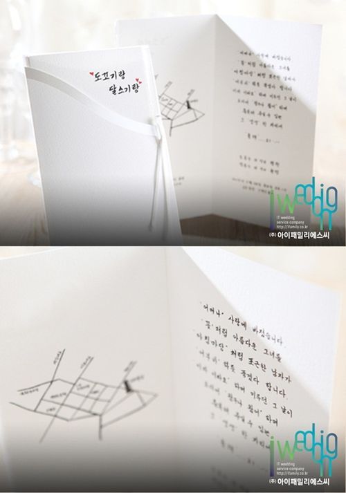 13일 공개된 청첩장은 카드 전면과 카드 안의 약도, 인사말까지 모두 손으로 써서 제작돼 관심을 모은다. 또 청첩장 내부의 인사말 또한 도경완이 진행하는 생생 정보통의 방송 멘트와 장윤정의 히트곡의 가사를 절묘하게 조합해 센스를 더했다.