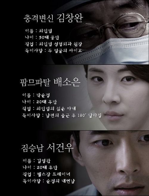 이번 캐릭터 영상은 성형 최고의 권위자 최인범의 섬뜩한 눈빛으로 시작되는데 출근 준비를 하다가 젊은 아내를 사랑스럽게 응시하던 그는 왜 그렇게 쳐다보냐는 아내의 질문에 “너무 예뻐서”라고 대답한다.
