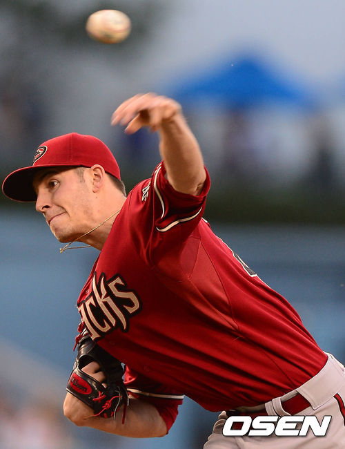 13일 오전(이하 한국시간) 미국 캘리포니아주 로스앤젤레스 다저스타디움에서 LA 다저스와 애리조나 다이아몬드백스의 경기가 열렸다. 다저스 선발 류현진과 맞대결을 벌이는 애리조나 선발 패트릭 코빈이 힘차게 공을 뿌리고 있다.
